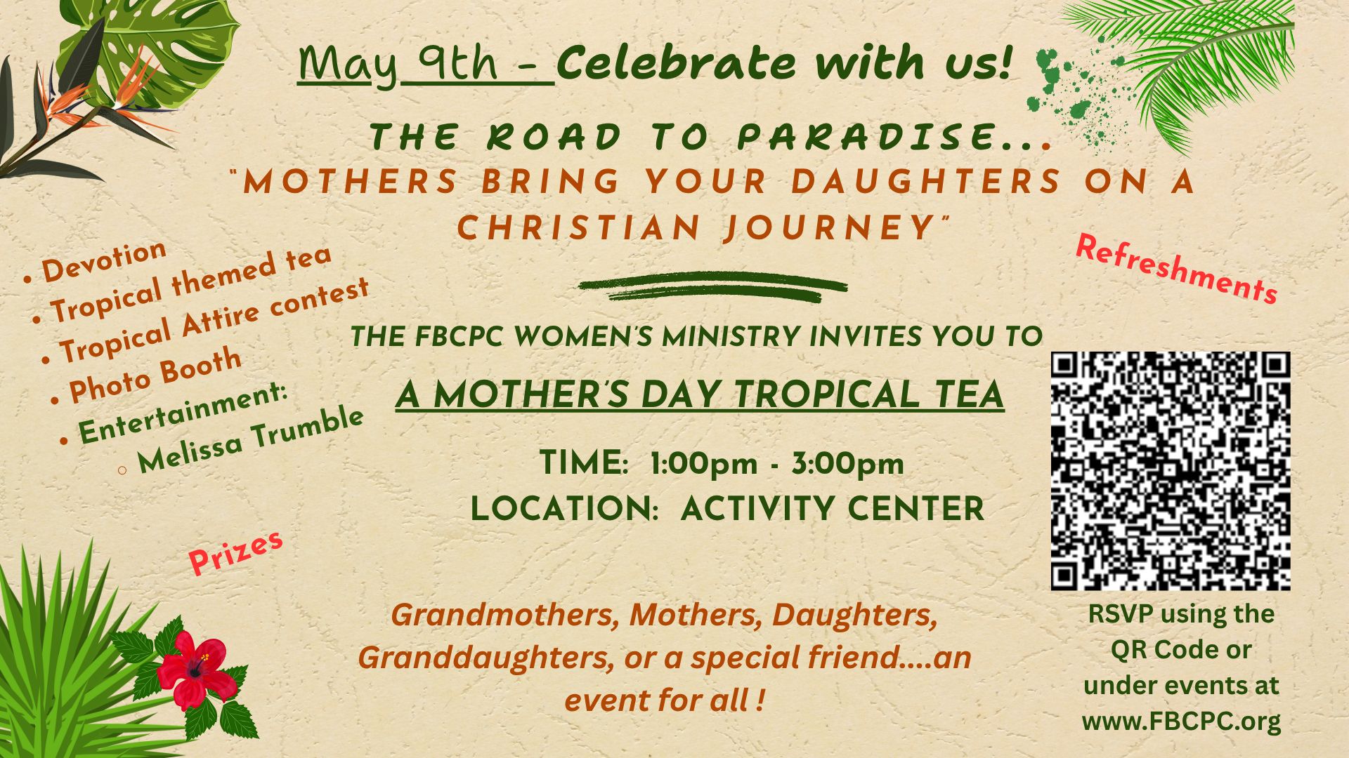 This is more than just a tea—it’s a time to connect, encourage, and celebrate the blessing of family, friendship, and faith as we walk together on “The Road to Paradise.”
